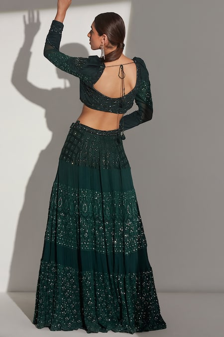 Black georgette lehenga with attached cancan & gota, thread embroidery. Comes with blouse.
