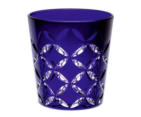 Blue round glass water tumbler with contrast tone leaf motif jaal work & cutwork detail.