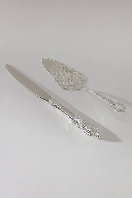 Buy_Table Manners_Silver Stainless Steel Kings Dining Bread Knife And Cake Server Set_at_Aza_Fashions