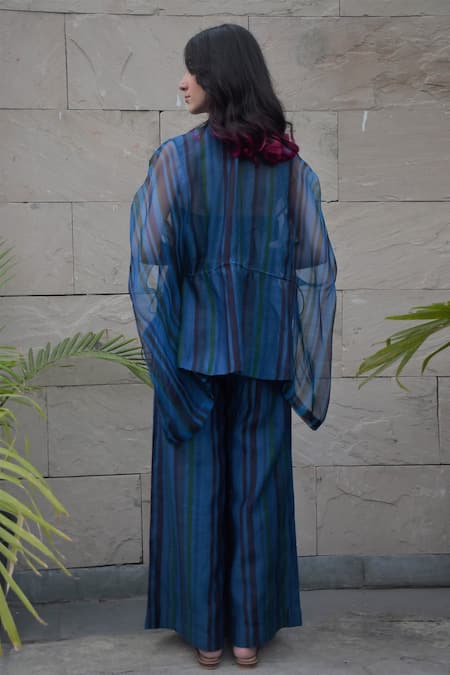 Blue striped angrakha style top with a drawstring waist.