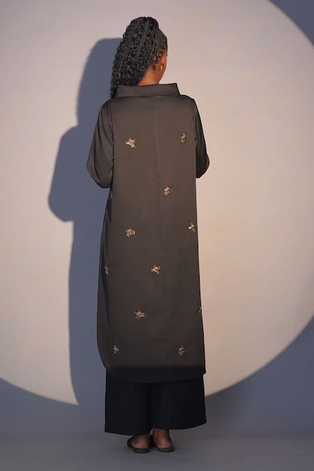 Black tunic featuring firefly motifs with hand embroidery in sequins and beads
