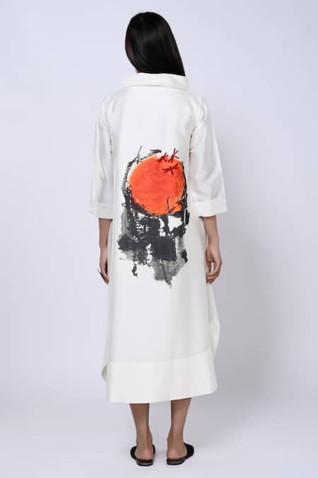 Ivory Chanderi Abstract Band Collar Watercolour Pattern Tunic
