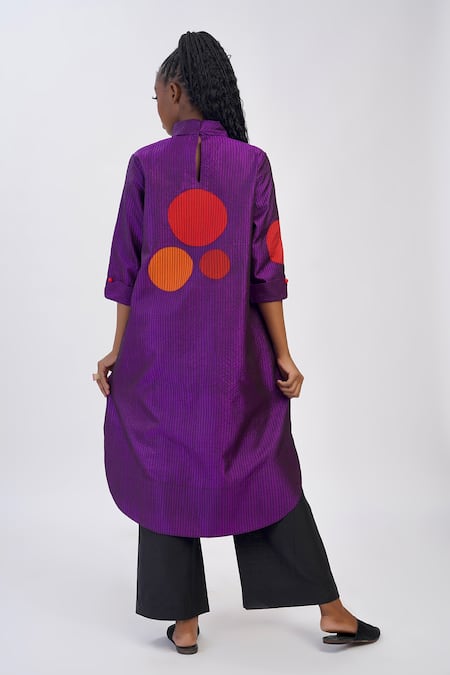 Buy_Taika By Poonam Bhagat_Purple Silk Applique High Neck Polka Kurta _Online_at_Aza_Fashions