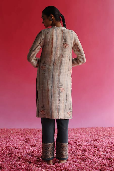 Cream Linen, Silk, , Chanderi, Handloom Bhuman Kurta Pant Set
