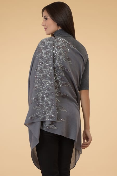 Buy_Talking Threads_Grey Embroidered Pashmina Stole_at_Aza_Fashions