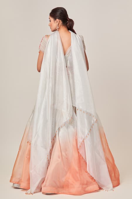 Grey Organza, Net, Silk Taffeta Elisa Dual Toned Embellished Lehenga Set