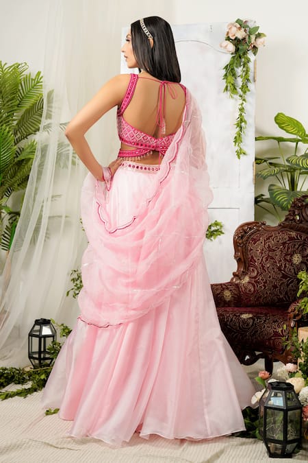 Pink Tafetta Silk And Organza Sweetheart Neck Embroidered Lehenga Set