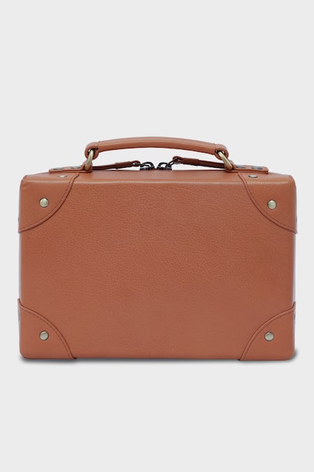 Dusty peach mini trunk sling bag featuring a boxy design with buff antique fittings