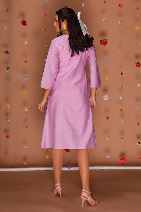 Purple Chanderi Embroidery Round Neck Hand Sunflower Midi Dress