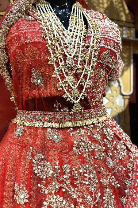 Red Silk, Net, Cotton Beads, Sequins, Carnival Elephant Bridal Lehenga Set