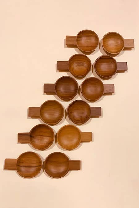 Buy_Tessera_Brown Natural Wood Tapas Small Spoons Set Of 12_Online_at_Aza_Fashions