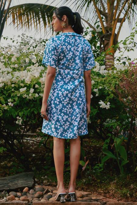 Green Tencel, Linen Polo Collar Bloom Print Dress