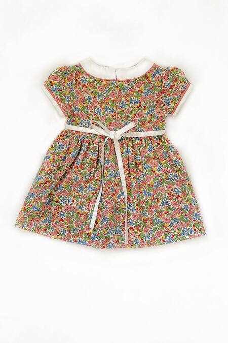 White Peter Pan collar, Tie-up bow at the waist, All-over floral print