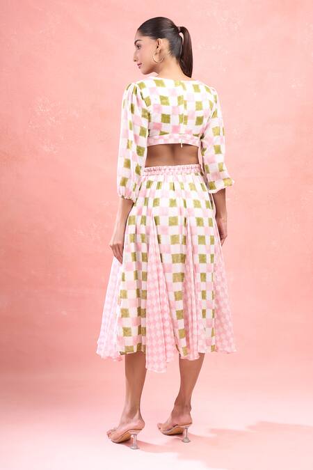 Multi-color midi dress crafted from ultra-soft cotton mulmul featuring hand-blocked checks