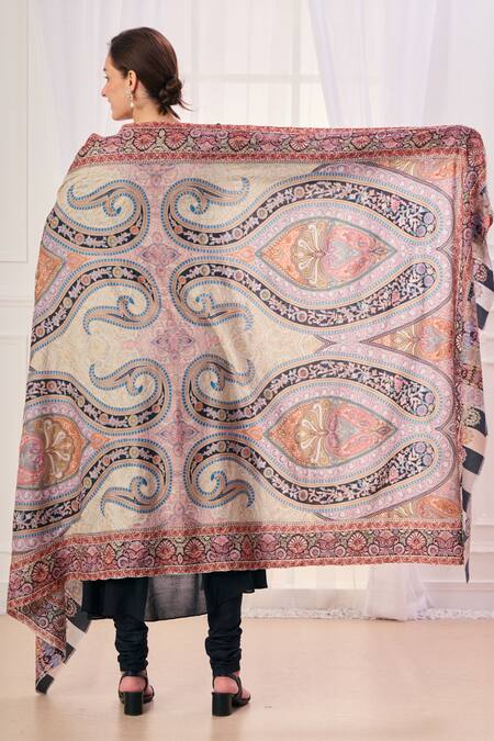 Intricate paisley pattern embroidery, Vibrant multi-color design, Fine wool fabric for warmth