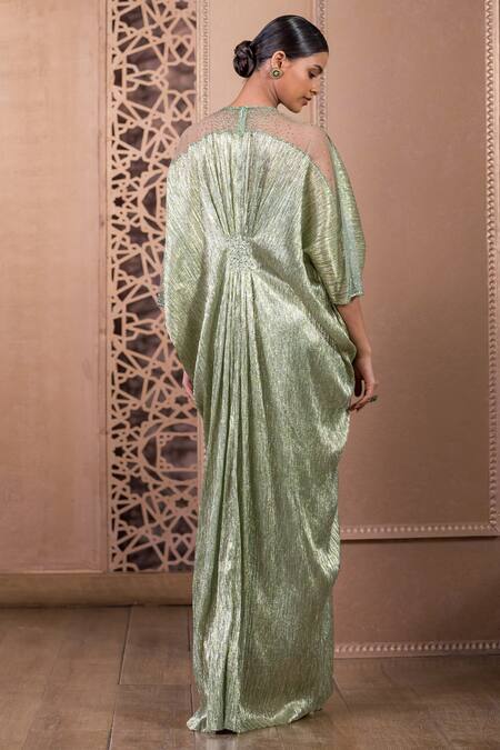 Green Crystals Round Neck Bohemian Shimmer Finish Gown