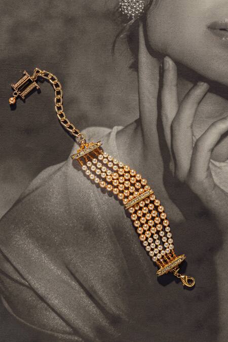 Gold Plated Pearls Double Flat Embellished Bracelet