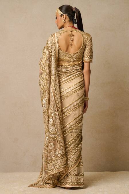 Gold Tulle Gota Patti, Beads Square Neck Embroidered Saree With Blouse