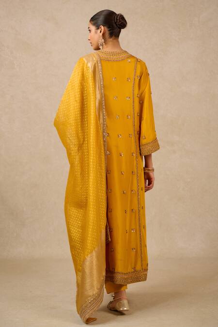 Yellow Silk, Brocade Embroidery Collared Dupion Dori Kurta Trouser Set