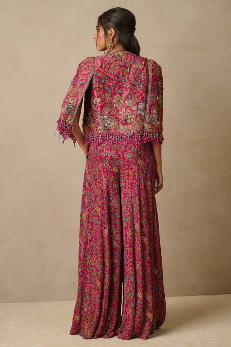 Multi Color Silk, Georgette Zari, Zardozi And Aari Work Gilet With Jumpsuit