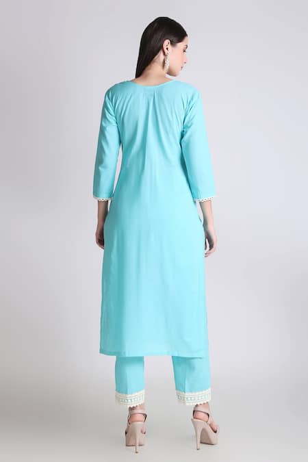 Sky Blue Cotton, Organza Sequins, Cut Work, Floral Bodice Kurta Pant Set