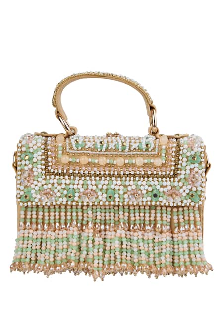 White Beads, Fringe Embellished Clutch Bag
