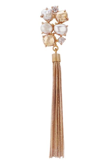 Gold plated earrings with pearl and zirconia crystal cluster head.