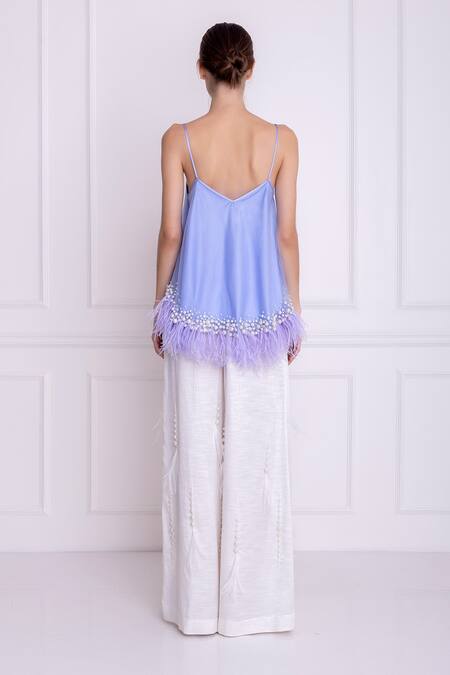 Feather embellishments, Note:, The top worn by the model is not for sale