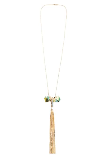 Rose gold plated long pendant necklace with swarovski crystals,butterfly wing as the centre piece & tassels.