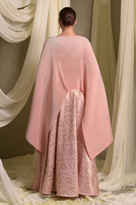 Buy_Tasuvure Indes_Pink Brocade, Silk Divine Florence Applique Pleated Cape With Lehenga_Online_at_Aza_Fashions
