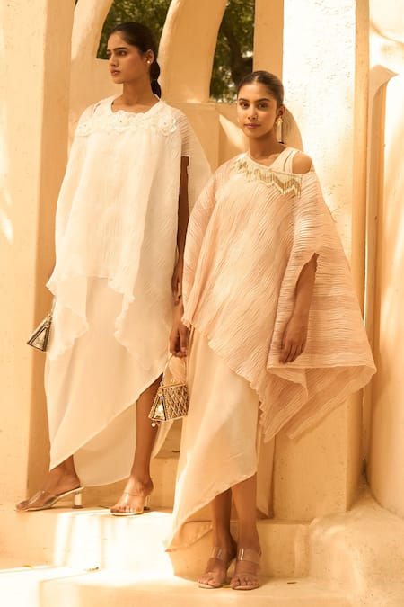 Buy_Tasuvure Indes_Ivory Round Neck Ombre Cape Maxi Dress_at_Aza_Fashions