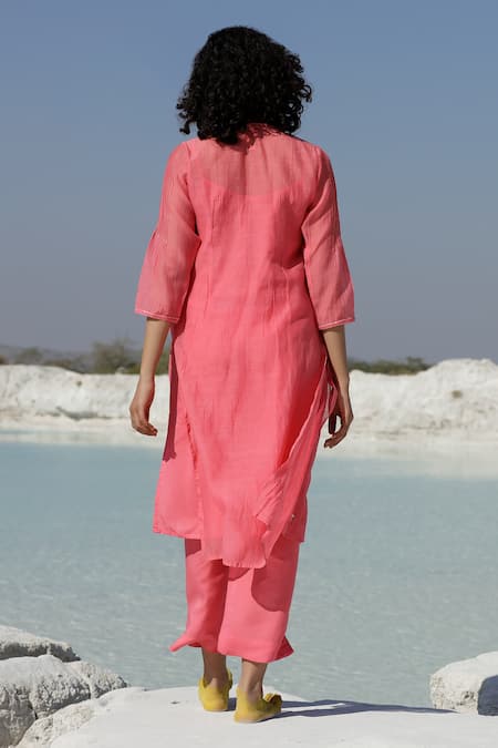 Coral Handloom Cotton, Viscose, Silk Chanderi Resham Kurta And Pant Set