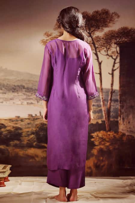 Buy_Tatwa_Purple Handloom Cotton, Viscose, Silk Sequins, Midnight Yoke Kurta And Pant Set _Online_at_Aza_Fashions