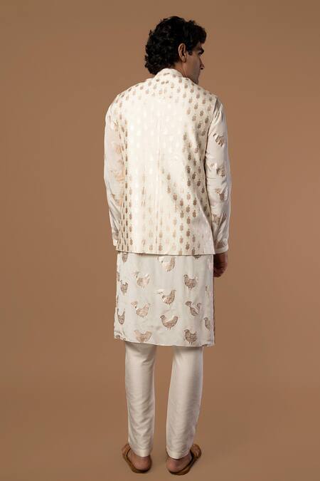 Ivory bundi with teardrop foil print, front buttons & welt pockets.