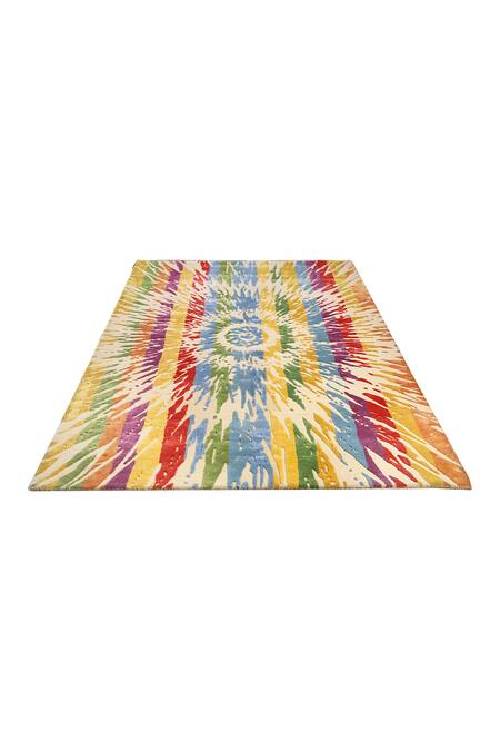 Qaaleen_Cream New Zealand Wool And Viscose Silk Emboss Technicolor Carpet_at_Aza_Fashions