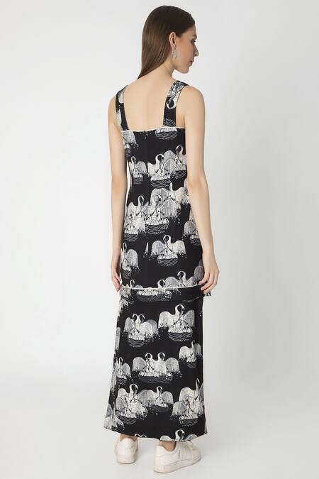 Buy_Masaba_Black Crepe Temple Swan Print Dress_Online_at_Aza_Fashions