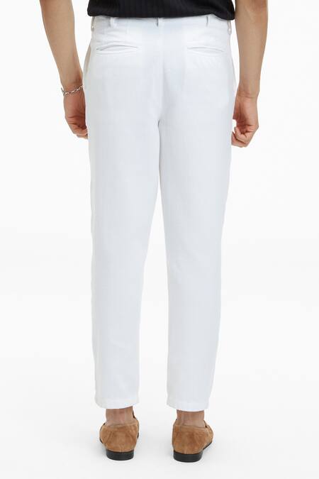 White handloom twill cotton straight fit pants featuring side and back pockets