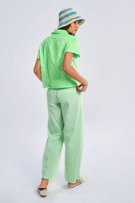 Lime green bling candy striped trouser crafted in 100% organic handloom cotton