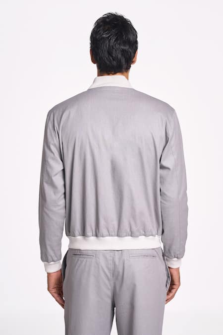 Grey Handloom Cotton Solid Berghain Bomber Jacket