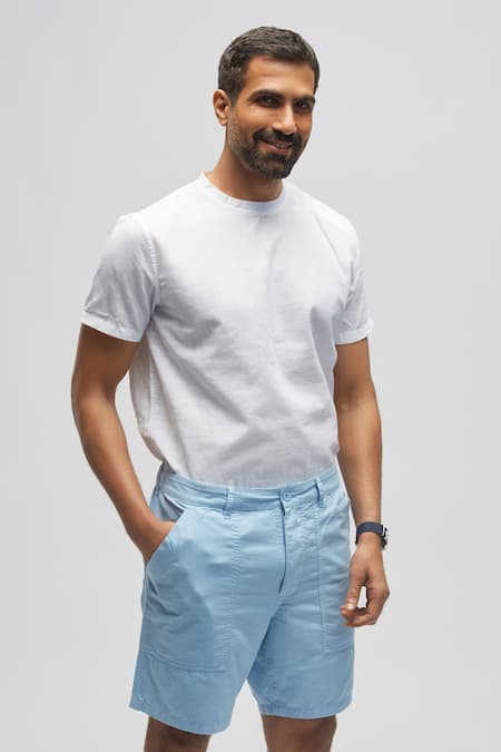 Blue 100% Organic Handloom Oxford Cotton Plain Castro Scout Shorts