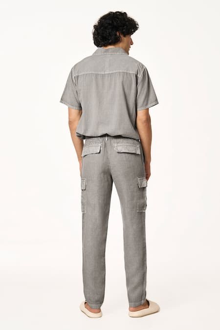 Gray Linen Charcoal Solid Cargo Pant
