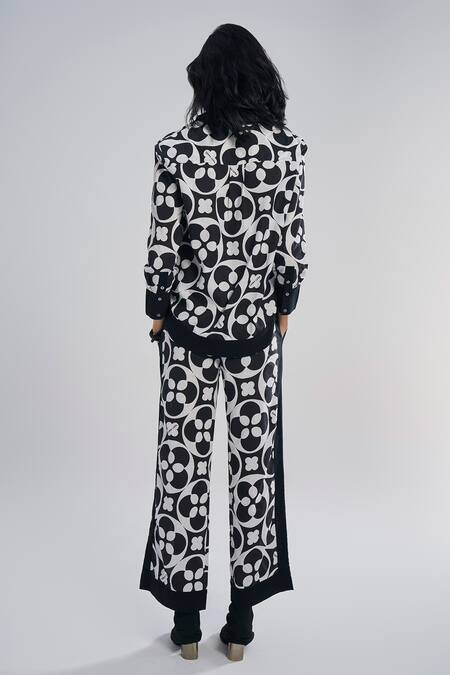 Black Cotton Collared Crescent Bloom Aurora Pattern Shirt