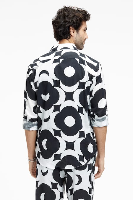 Black Cotton Embroidery Dante Moonglow Print Shirt