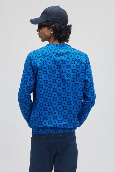 Blue 100% Organic Handloom Oxford Cotton Moon Bloom Mega Print Sweatshirt