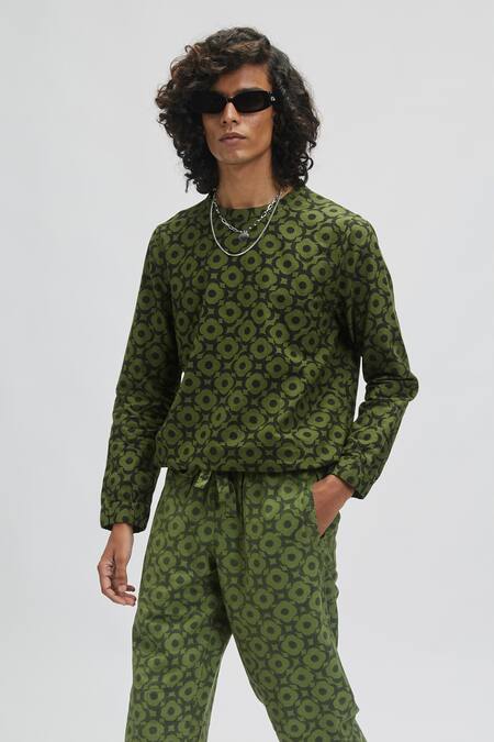 Green 100% Organic Handloom Oxford Cotton Moon Bloom Mega Print Sweatshirt
