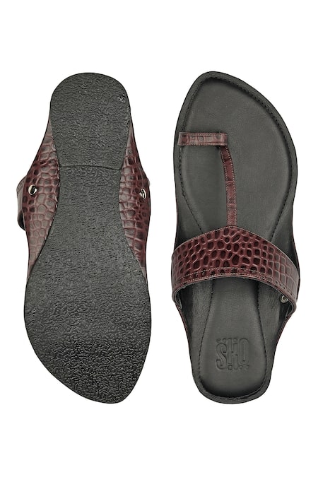Buy_Sko_Maroon Textured Kolhapuris_at_Aza_Fashions