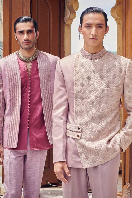 Textured details, Note:, The neckpiece worn by the model & the other outfit worn by the male model on the right is not for sale