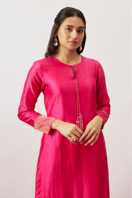 Pink Organza, Chanderi, Handloom Cotton Daneiris Hand Kurta Pant Set