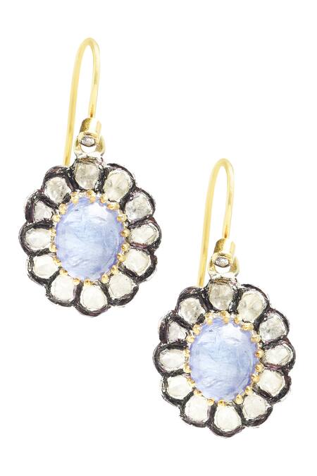 Black and gold floral shape earrings featuring polki and tanzanite stone embellishments