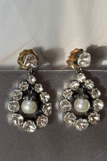 Silver Plated Diamonds, Pearls Twilight And Uncut Earrings